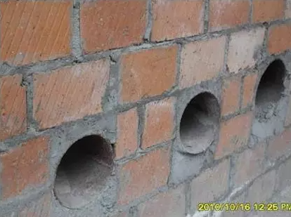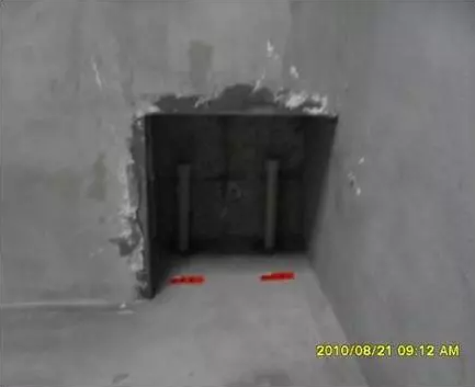 兩組及以上相鄰立管留洞可采用預制矩形孔模留設,后期管道安裝完成后進行吊洞處理。(如排水立管和專用通氣立管、管道井內分區給水立管、消防立管等)