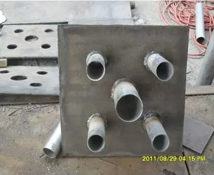 4、如采用大鋼模,因模板定位具有唯一性,故可選用矩管點焊在模板上以保證預埋的準確性和提高效率。