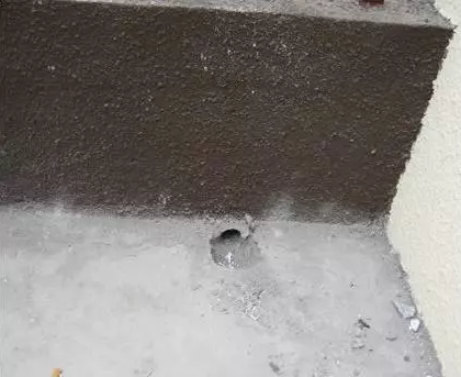 陽臺側排水安裝方式錯誤,且洞口過低效果差。應采用側排雨水口。